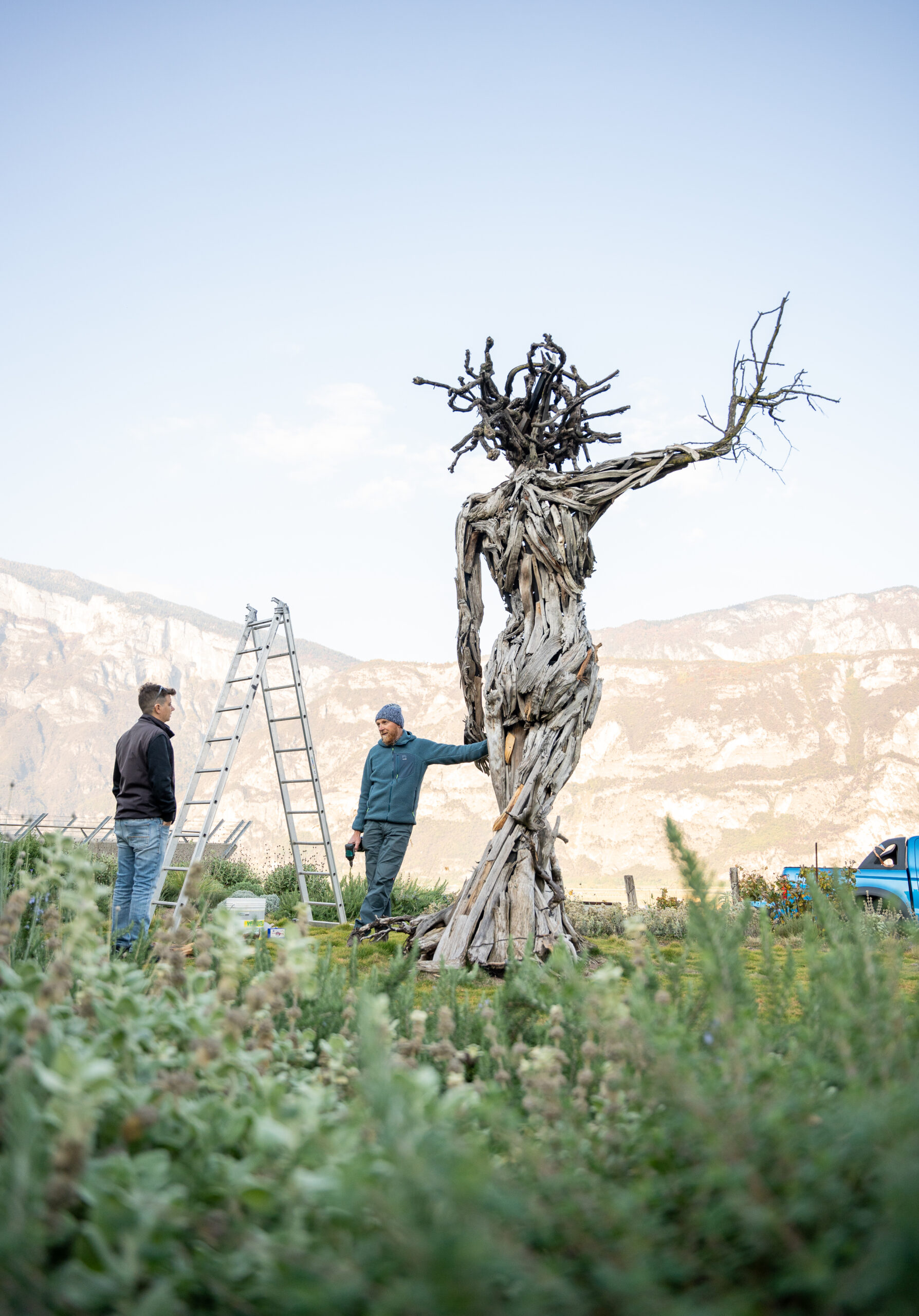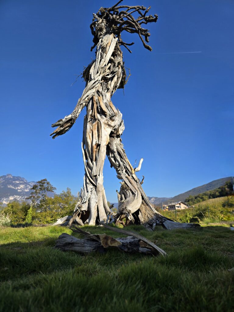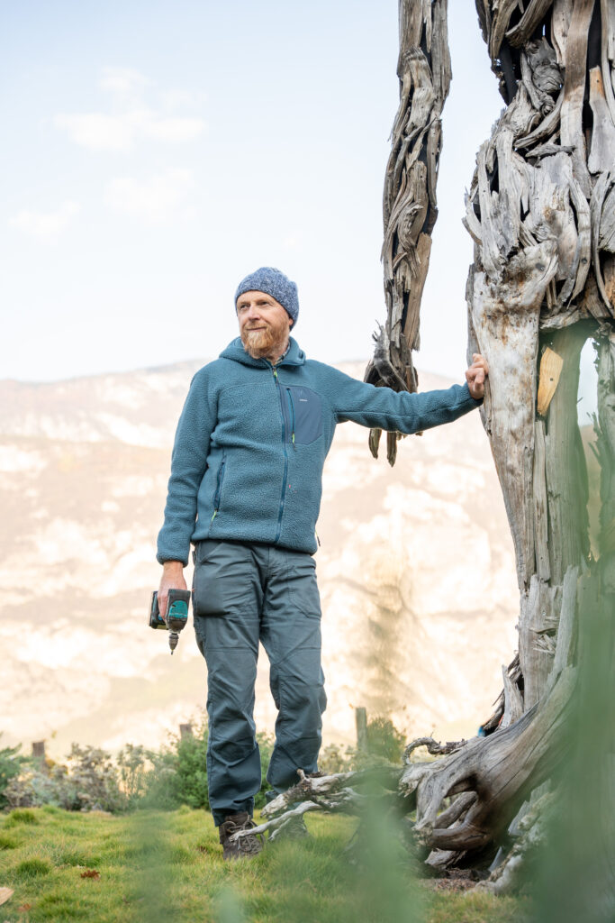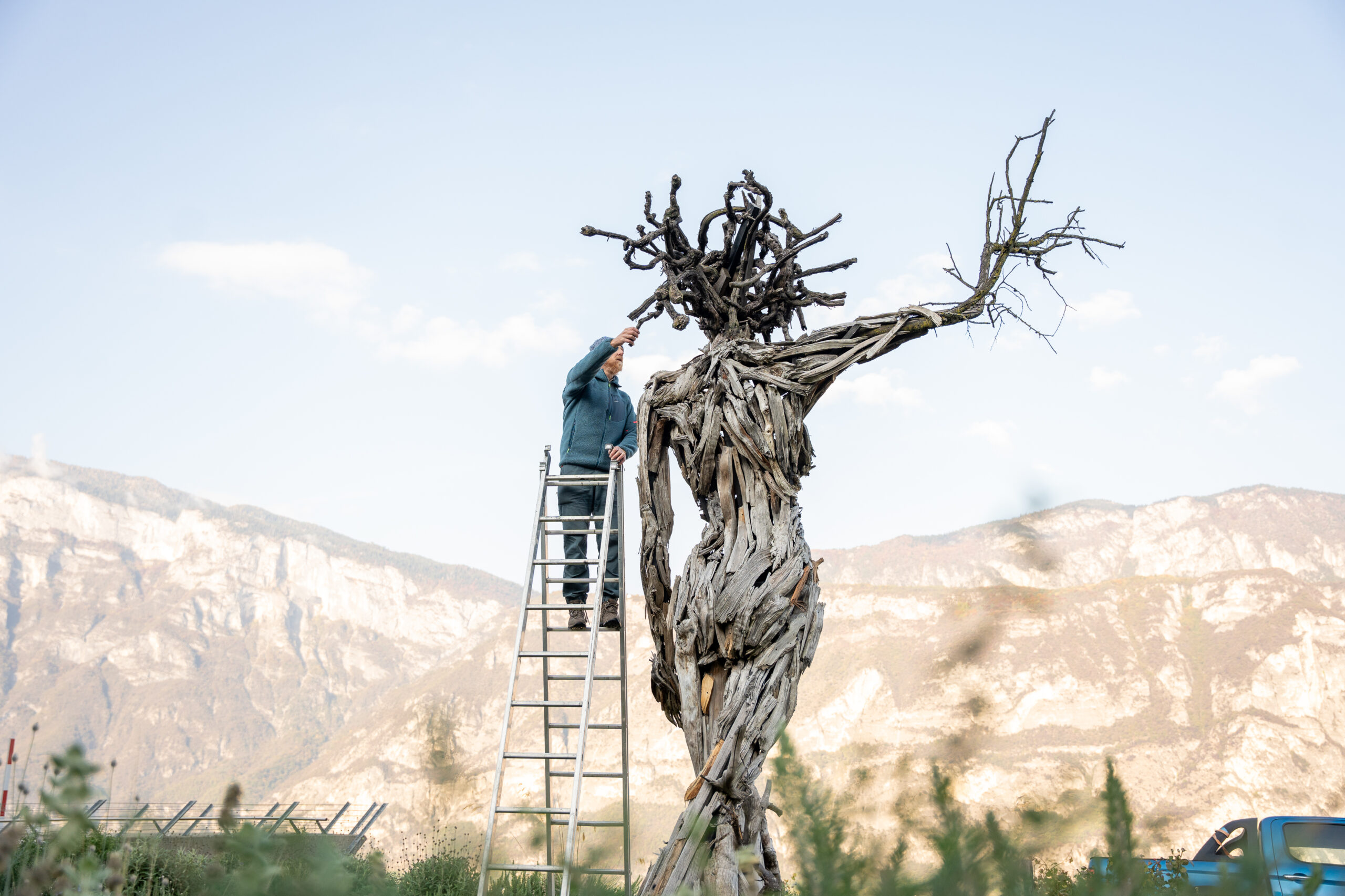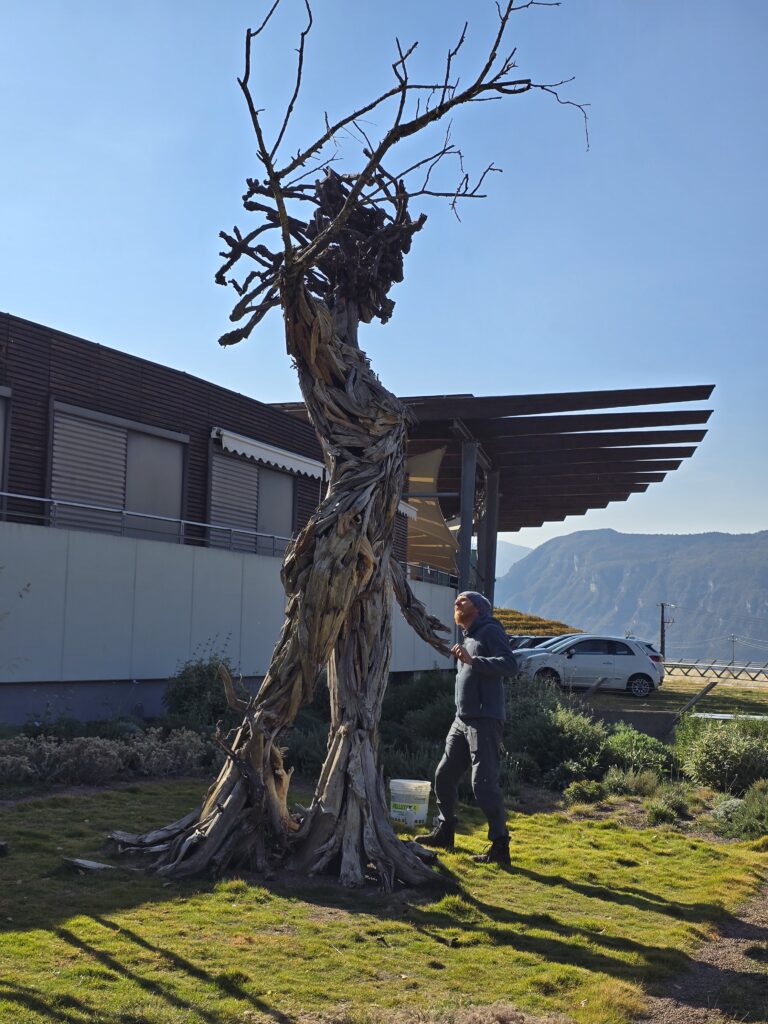 scultore all’opera sulla statua “Terra e Cielo”